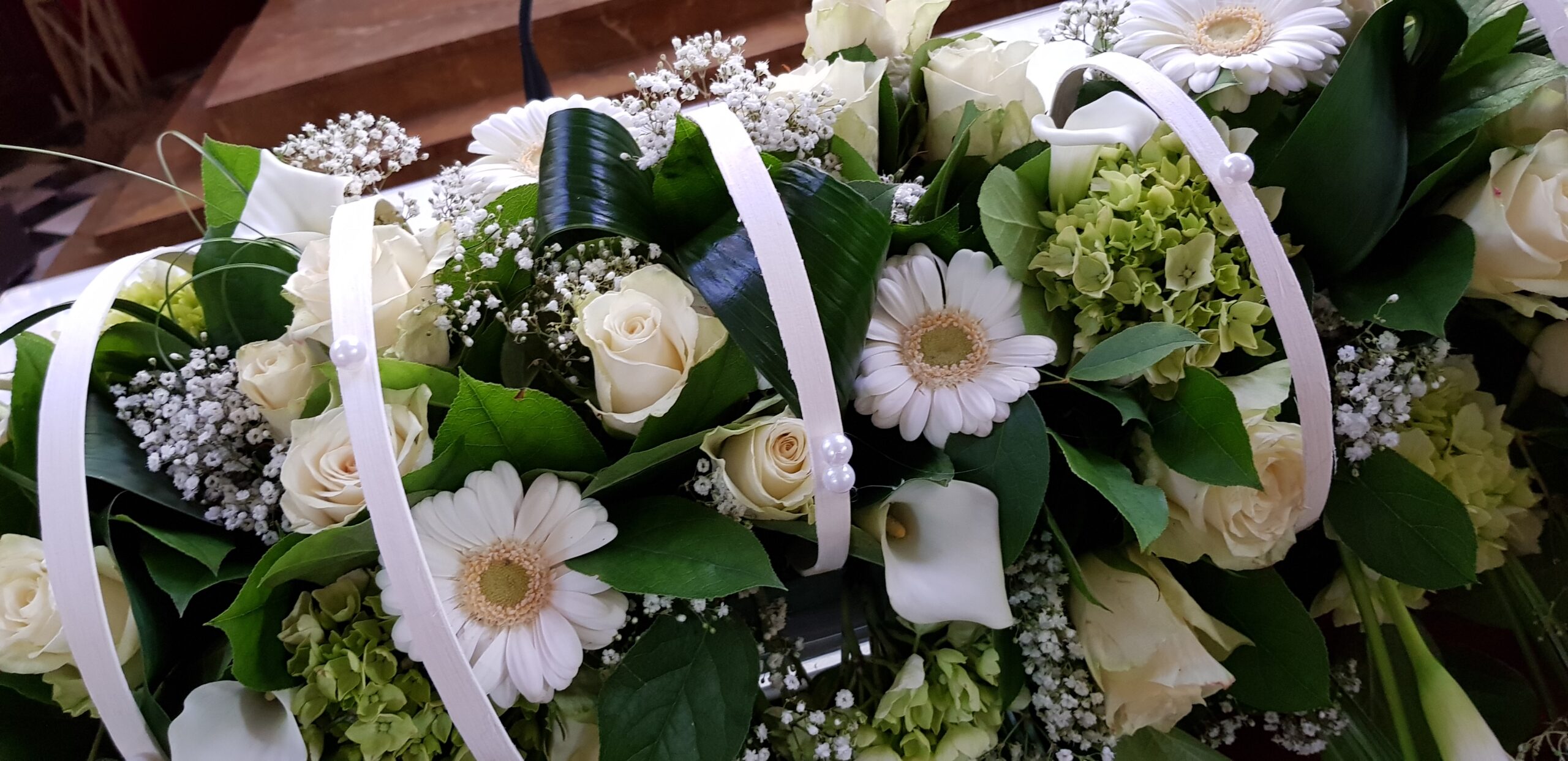 Mooi bloemstuk voor op altaar of ceremonietafel. Spring gerust even binnen om te vragen naar de mogelijkheden.