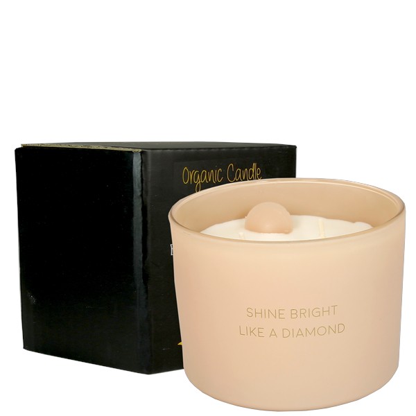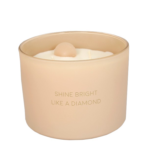 Een heerlijke geurkaars gemaakt van biologische sojawas. In deze kaars vind je een diamant gemaakt van wax. Op de kaars staat met gouden letters ‘Shine bright like a diamond’. Een origineel cadeau voor iemand die jij vindt shinen als een gepolijste diamant